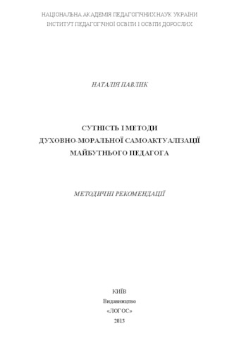 - Павлик, Н.В. (2013) Essence and methods Spiritual and moral self-actualization Future teacher [Teaching Resource] (Unpublished)