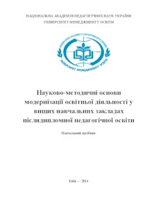 Олійник, В.В., Ляхоцька, Л.Л., Гравіт, В.О., Самойленко, О. М., Хасіневич, С.Ю., Кліменко, А. Л., Антощук, С. В. and Сябрук, Т. І. (2014) Scientific and methodological bases of modernization of educational activity in higher educational institutions of postgraduate pedagogical education . УМО. (Unpublished)