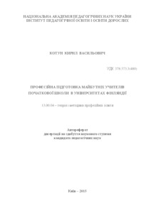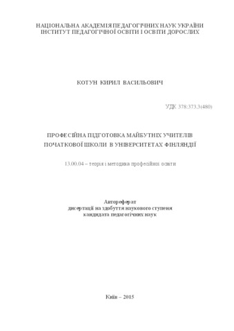- Котун, К.В. (orcid.org/0000-0002-3661-6689) (2015) Professional pedagogical training of future primary school teachers in Finland Dissertation candidate2 thesis, Інститут педагогічної освіти і освіти дорослих.