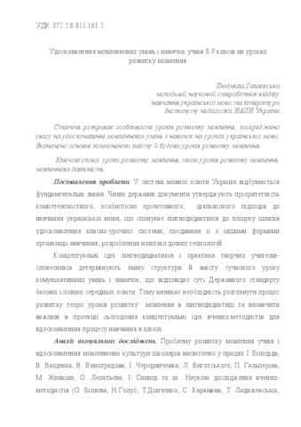 - Галаєвська, Л.В. (2017) Improvement of speech skills and skills of students of grades 8-9 in speech classes. Українська мова і література в школі, 5 (134). pp. 41-45.