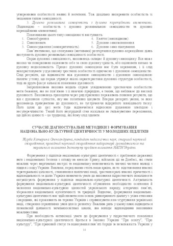 - Журба, Катерина Олександрівна (orcid.org/0000-0002-3854-4033) (2017) Мodern diagnostic methods of formation national-cultural identity in young alloys Матеріали ІХ міжнародного фестивалю педагогічних інновацій.