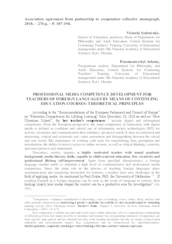 Sydorenko, Victoria (orcid.org/0000-0002-6626-4581) and Ponomarevskyi, Artemy (2018) Рrofessional media competence development for teachers of foreign languages by means of continuing education courses: theoretical principles . Accent Graphiccs Communication Publishing, c. Hamilton, Ontario.
