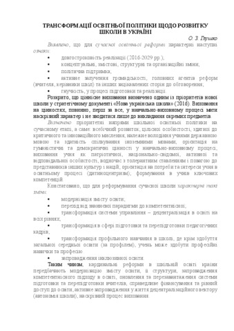 The theses reveal the essential features of modern educational reforms; outline the priority directions of school educational policy in Ukraine. The characteristic changes that are inherent in the modern process of reforming the national school are determined.