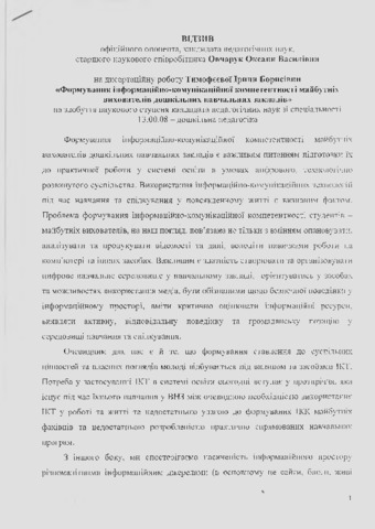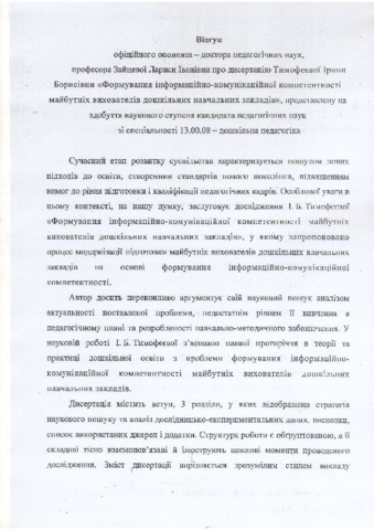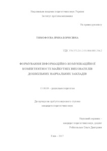 - Тимофєєва, І.Б. (2017) Formation of information and communication competence of future specialists in preschool education Dissertation candidate thesis, Інститут проблем виховання.
