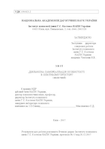| Divisions: | Institute of Psychology after N.Kostiuk > Synytsya department of education |