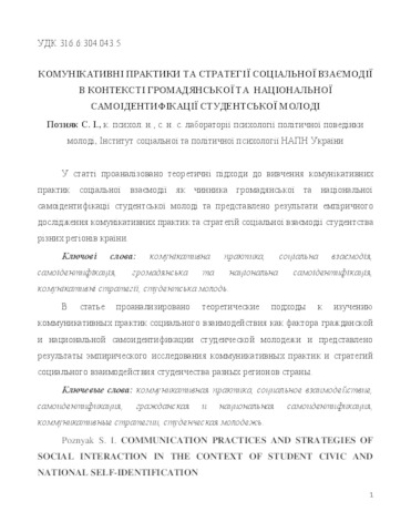 | Keywords: | communication practice, social interaction, self-identification, civic and national self-identification, communication strategies, student youth. |