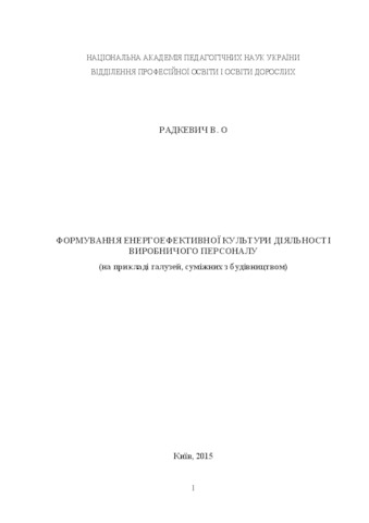 Радкевич, В.О. (2015) Formation of an energy-efficient culture of activity of production personnel (e.g., branches adjacent to the construction industry) . ІПТО НАПН України, м. Київ, Україна.