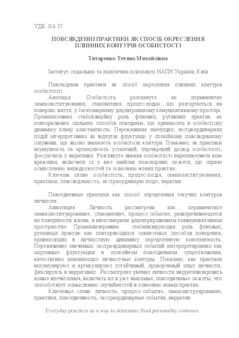 ПОВСЯКДЕННІ ПРАКТИКИ ЯК СПОСІБ ОКРЕСЛЕННЯ ПЛИННИХ КОНТУРІВ ОСОБИСТОСТІ.pdf Download (330kB) | Preview |