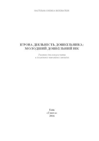 The book was created in accordance with the requirements of the educational "Child's Game" element of the basic component of preschool education and approved by the Ministry of Education and Science of Ukraine current programs. The book discusses gaming/s peculiarities of developing influence on the mental development of 4-5 years/ child age. Various forms of pedagogue work with children and examples of different types of games are presented. The book addressed to specialists of preschool education (managers, teachers, psychologists), students of the specialty "Preschool pedagogy and psychology", parents.