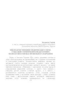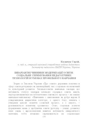 - Косянчук, Сергій Володимирович (2018) Invariant factors of education modernization: social component of pedagogical technologies in the profile education «Folia comeniana» : Вісник Польсько-української науково-дослідницької лабораторії психодидактики імені Я. А. Коменського, 1. pp. 174-178.
