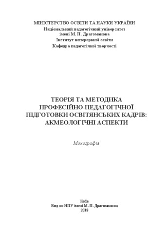 Щербина, Дар'я Володимирівна (orcid.org/0000-0001-9697-3760) (2018) Acme-oriented model of formation of a communicative culture of future consultants of the educational sphere in the process of master's training . Вид-во НПУ імені М.П.Драгоманова, м.Київ, Україна. (In Press)