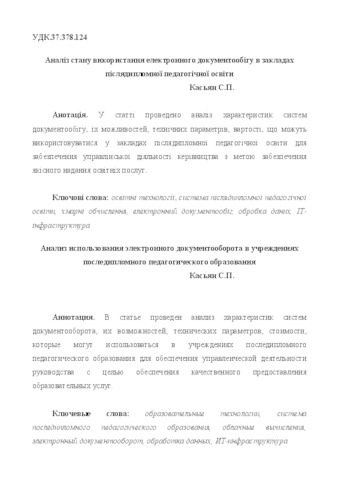 Аналіз стану використання електронного документообігу в закладах післядипломної педагогічної освіти як педагогічної проблеми.pdf Download (398kB) | Preview |