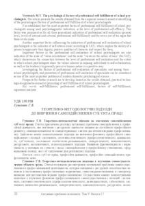 The article discusses the actual problem of self-fulfillment in professional activities, which means a person’s power for constant professional development, self-perfection and self-determination in order to achieve the peaks of professionalism. The article shows that self-fulfillment is a manifestation of a person’s essential, transformative activities, always aimed at the full manifestation and the maximized use of his/her efforts to achieve desired results; therefore, namely in the professional activities, self-fulfillment acts fully as a system-forming factor allowing achievement of the two-fold goal of such activities: their ultimate results and the person’s development as an activity agent. The highest point of such development is achievement of the top of professionalism - acme. The analysis of main concepts to the study of the phenomenon of professional self-fulfillment has been made from the points of views of: systemic, systemic-genetic (professional-genetic), activity, subjective, systemic personality-developmental, synergetic, acmeological, resource, axiological, psychosocial approaches. The fragmentation and variety in views on the nature and place of self-fulfillment in professional development are revealed; the positions unifying the considered approaches are formulated.