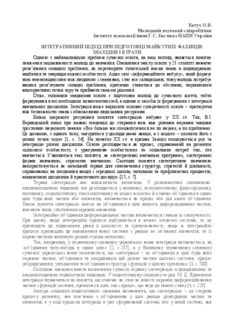- Котух, О.В. (orcid.org/0000-0001-5706-3190) (2017) Integrative approach in preparation of future specialists: finds and losses In: Збірник матеріалів V Всеукраїнської науково-практичної конференції молодих учених «Наукова молодь-2017» (14 груд. 2017 р., м. Київ) . ІІТЗН НАПН України, м. Київ, Україна, pp. 276-281.