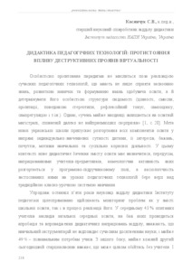 - Косянчук, Сергій Володимирович (2018) Didactics of pedagogical technologies: confrontation with the influence of destructive manifestations of virtuality Nowoczesna nauka: teoria i praktyka: Mater. IІ Międz. Konf. Nauk.- Prakt. pp. 218-222. ISSN ISBN 978-83-7364-870-8