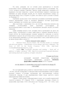 - Белан, Владислав Юрійович (2018) Features of informatization of education in Poland and Ukraine In: Науково-методичне забезпечення професійної освіти і навчання: збірник матеріалів ХІІ звітної Всеукраїнської науково-практичної конференції (м.Київ, 5-19 березня 2018 р.) . Інститут професійно-технічної освіти НАПН України, м.Київ, Україна, pp. 154-156.