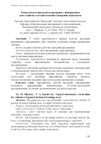 - Глинський, Я.М. and Ряжська, В.А. (2015) Typical informatics curriculum for students of general technical training areas Theory and methods of learning mathematics, physics, informatics, 2(36) (13). pp. 139-153. ISSN 2309-1479