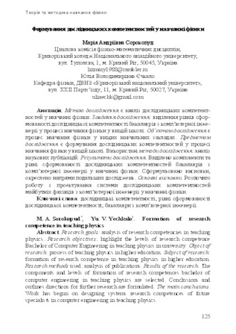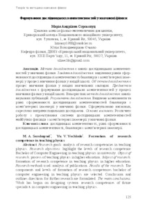 - Сорокопуд, Марія Андріївна and Єчкало, Ю.В. (2015) Formation of research competence in teaching physics Theory and methods of learning mathematics, physics, informatics, 2(36) (13). pp. 125-129. ISSN 2309-1479