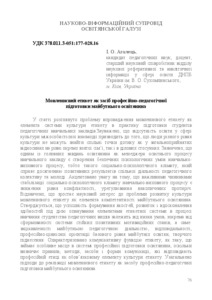 etiquette culture system into the future teachers preparing practice.It’s noted that the lack of education in the interpersonal interaction culture sphere leads to the fact that people of different culture levels can’t find common contact points both in common relations at the level of a single family and in business relations. It’s pointed that one of the main tasks of a teacher as a manager of an educational institution the educational process is the educational process safe psychological conditions creation, that is, a social and psychological climate that contributes to the achievement of positive results of joint activities of the teaching staff and youth. Attention is focused on the fact that important factors in stabilizing the socio-psychological climate of the educational process is the conflict level reduction, the settlement of the accumulated contradictions.Defined, that scientific interest in the development of the speech etiquette culture as an element of the competence of the future teacher is growing. It is arguedthat the success of the formation of qualities, the development and improvement of abilities under the influence of mastering the elements of the etiquette system in the process of teaching students of pedagogical higher educational institutions depends on a number of conditions, in particular, on the formation of a system of stable positive motivational states, namely: the interest of the future pedagogical activity, responsibility, professional-value orientation of the basic level of future teachers, creative upsurge.The communicative function of etiquette is described as one that takes a special place in the teacher’s professional training system, since it defines rules, methods, means and forms of communication that correspond to professional ethics as a mandatory element of etiquette culture. The approaches to implementation of speech etiquette as a means of professional and pedagogical preparation of the future teacher are generalized.