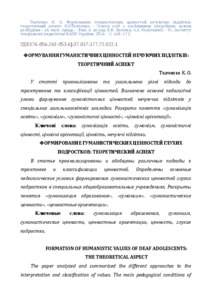 The paper analyzed and summarized the different approaches to the interpretation and classification of values. The main pedagogical conditions of formation of humanistic values of deaf adolescents in special educational institutions. The notions of "humanization of education", "humanism", "humanistic values", "value orientation".
