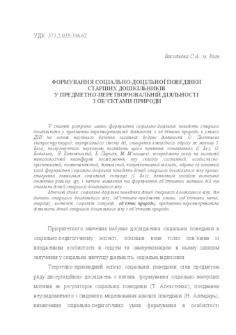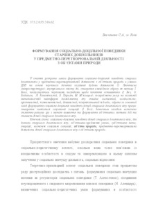 - Васильєва, С.А. (orcid.org/0000-0002-0452-4835) (2017) Formation of social-advisable behavior of senior preschoolers in subject-transforming activity with objects of nature Теоретико-методичні проблеми виховання дітей та учнівської молоді, 1 (21). pp. 95-106. ISSN 2308-3778