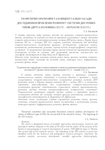 - Васильєва, С.А. (orcid.org/0000-0002-0452-4835) (2016) Theoretical orientation and conceptual framework research problem development of system of different types of PEE (the second half of the twentieth century - The beginning of the XXI century) Наукові записки Вінницького державного педагогічного університету імені Михайла Коцюбинського. Серія: Педагогіка і психологія, 48. pp. 148-153. ISSN 2415-7872
