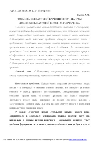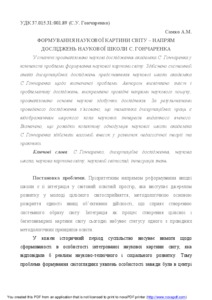 | Keywords: | S. Honcharenko, dissertation researches, scientific school, scientific view of the world, scientific outlook, knowledge integration |