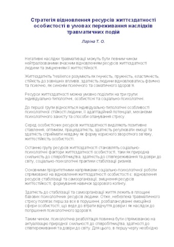 Ларіна Т.О. Стратегія відновлення ресурсів життєздатності особистості в умовах переживання наслідків травматичних подій.pdf Download (536kB) | Preview |