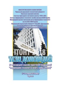 Черкаський державний, технологічний університет, ННК "ІПСА", НТУУ «КПІ імені Ігоря Сікорського», ІІТЗН, НАПН України, Міжнародний науково-навчальний центр, інформаційних технологій і систем НАН і МОН України, Національний педагогічний університет, імені М.П. Драгоманова, Інститут інформатики, Люблінської політехніки and Сілезький університет, в Катовіцах (2018) Abstracts of the IV International Scientific and Practical Conference "Information Technologies in Education, Science and Technology" (ITEST-2018) . Cherkasy State Technological University, м. Черкаси, Україна. ISBN 978-966-9730-14-5