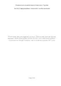 - Кільченко, А.В. (orcid.org/0000-0003-2699-1722) and Климчук, Д.М. (2018) Monitoring the web resource of the "Information Technologies and Learning Tools" with the help of Google Analytics: report for October-December 2017 [Experiment]