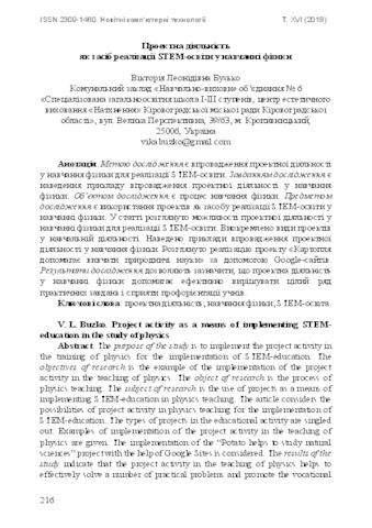 - Бузько, В.Л. (2018) Project activity as a means of implementing STEM-education in the study of physics New computer technology (16). pp. 216-220. ISSN 2309-1460