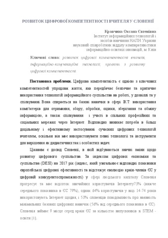 РОЗВИТОК ЦИФРОВОЇ КОМПЕТЕНТНОСТІ ВЧИТЕЛЯ У СЛОВЕНІЇ.pdf Download (261kB) | Preview |