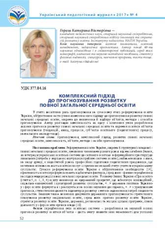 - Гораш, Катерина Вікторівна (2017) Comprehensive approach to prediction of the development of general education Український педагогічний журнал, 4 (12). pp. 52-59. ISSN 2411-1317