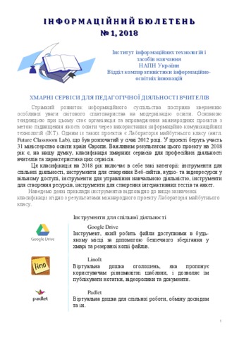 - Сороко, Н.В. (2018) Cloud services for teachers teaching activities. Newsletter № 1 ІІТЗН НАПН України, м. Київ, Україна.