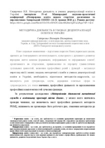 - Сидоренко, В.В. (orcid.org/0000-0002-6626-4581) (2018) Methodical activity in the conditions of the decentralization of education in Ukraine In: Матеріали ІV-ої Міжнародної науково-практичної конференції «Неперервна освіта нового сторіччя: досягнення та перспективи», 14-21 травня 2018 р. . Запорізький ОІППО, м. Запоріжжя, Україна.