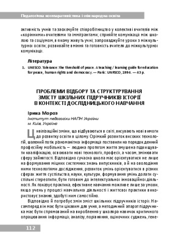 - Мороз, Ірина Володимирівна (2018) Problems of selection and structuring of the content of school history textbooks in the context of research training In: Педагогічна компаративістика і міжнародна освіта – 2018: трансформації та інновації в освіті у глобалізаційному світі: матеріали ІІ Міжнародної наук.-практ. конференції . ТзОВ «Трек-ЛТД», м. Київ, Україна, pp. 112-113.
