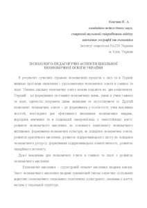 The article is devoted research psikhologo-pedagogical aspects of modern school economic education in Ukraine. The analysis of process of development of economic thought, economic culture, critical thought, enterprise culture is carried out