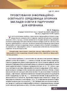 - Топузов, Михайло Олегович (orcid.org/0000-0001-7890-5959) (2018) Designing the information and educational environment of base educational institutions in a textbook for managers Проблеми сучасного підручника (20). pp. 473-485. ISSN 2411-1309