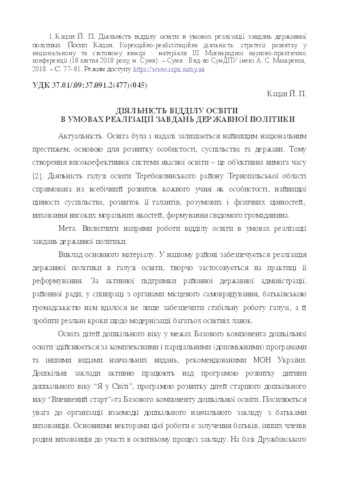 - Кацан, Й.П. (2018) The Department of Education activities in the conditions of realization the state policy Корекційно-реабілітаційна діяльність: стратегії розвитку у національному та світовому вимірі : матеріали ІІІ Міжнародної науково-практичної конференції (18 квітня 2018 року, м. Суми). pp. 77-81.