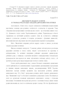 The Department of Education work directions in the conditions of realization the tasks of state policy are highlighted.