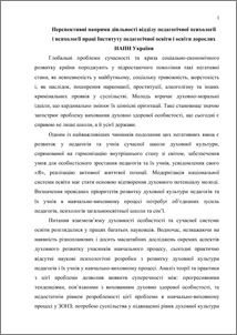 Аrticle is devoted to the topic: "Perspective directions of activity of the department of educational psychology and work Psychology Institute of teacher education and adult education NAPS Ukraine".