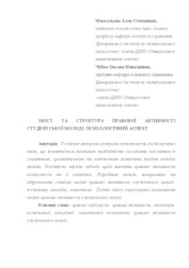 | Keywords: | legal consciousness; legal activity; adaptation; cognitive, emotional, behavioral components of student youth`s legal activity |