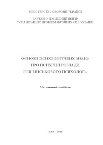 The methodical manual provides basic information about the most common psychiatric disorders that are encountered in the practice of military psychologists. The measures for differential diagnostics, assessment of the structure and degree of neuropsychiatric disorders are proposed in order to choose an adequate professional strategy for the provision of psychological assistance by a psychologist. The materials of the manual can be used by psychologists, listeners, cadets of profile higher military educational institutions of the Ministry of Defense of Ukraine, officers of moral and psychological support, and other persons whose content of activities is to provide psychological assistance.