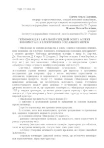 - Пінчук, О.П. (orcid.org/0000-0002-2770-0838) and Яськова, Н.В. (2017) Gameimization in general secondary education: the aspect of the use of electronic social networks In: Збірник матеріалів V Всеукраїнської науково-практичної конференції молодих учених «Наукова молодь-2017» (м. Київ, 14 груд. 2017 р.) . ІІТЗН НАПН України, м. Київ, Україна, pp. 179-183.