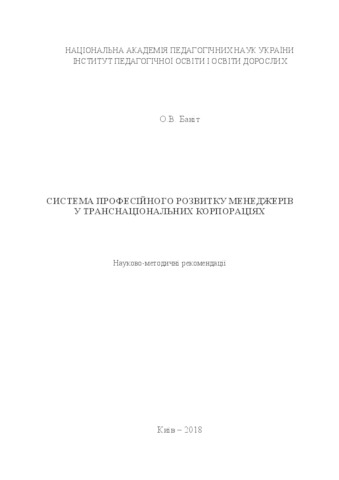 - Баніт, Ольга Василівна (2018) System of professional development of managers in transnational corporations [Teaching Resource]