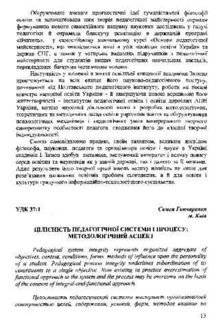 - Гончаренко, Семен Устимович (2008) Integrity of the pedagogical system and process: the methodological aspect Філософія педагогічної майстерності. pp. 13-24. ISSN ISBN 978-966-621-387-0