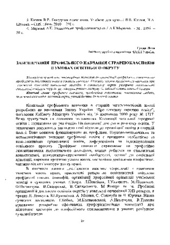 - Гуцан, Л.А. (orcid.org/0000-0003-1588-0162) (2018) Provision of profile education of senior pupils in the educational district In: Профорієнтація: стан і перспективи розвитку збірник матеріалів VIII психолого-педагогічних читань, присвячених пам’яті Б. О. Федоришина (м. Київ, 17 травня 2018 р.) . ДКС «Центр», м. Київ, Україна, pp. 22-25.