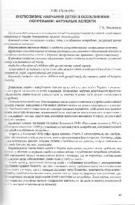 The actual aspects of the implementation of inclusive education for children with special needs in Ukraine (theoretical, legal, organizational) are presented.