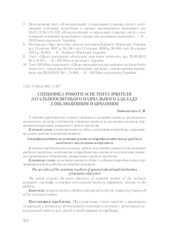 Литовченко С. В. Специфіка роботи асистента вчителя загальноосвітнього навчального закладу з інклюзивним навчанням.pdf - Published Version Download (115kB) | Preview |