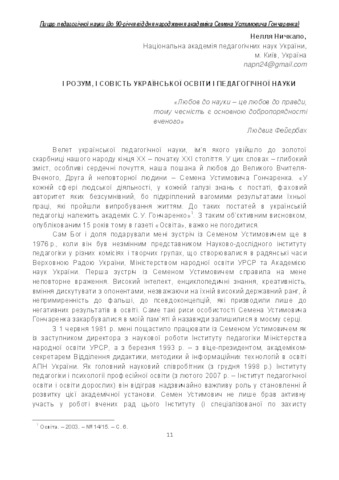 - Ничкало, Нелля Григорівна (orcid.org/0000-0002-5989-5684) (2018) Mind and Conscience of Ukraine Education and Pedagogical Science In: Лицар педагогічної науки (до 90-річчя від дня народження академіка Семена Устимовича Гончаренка) . ТОВ "ДКС Центр", м. Київ, Україна, pp. 11-15. ISBN 978-617-7300-25-9